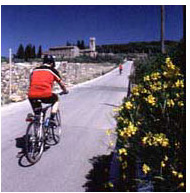 Lush woods, mountain-ridge vistas, silvery olive groves, wispy poplars, rolling acres of Sangiovese vineyards, and quaint villages from the 13th C. Chianti League are what's in store on today's ride, which stops for lunch in the wine town of Gaiole in Chianti. Afternoon brings either more miles in the Chianti hills, or else takes us nearby to the family-run Cacchiano wine estate, located in a magnificent medieval castle, where we'll taste their splendid Chiantis. Afterwards, we'll stroll in the town of Radda in Chianti, once the capital of the Chianti League, and hear how the black rooster came to be Chianti Classico's symbol. Dinner is at the cozy Le Vigne restaurant, located smack in the middle of a vineyard. [25+ miles] B, D