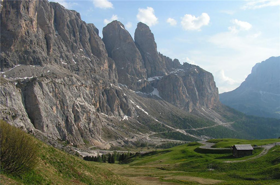 Trekking up the Pordoi Pass
