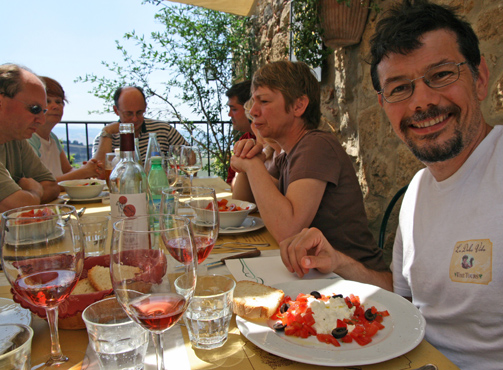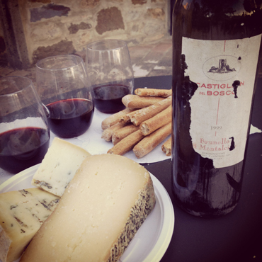Before dinner, we have an informal tasting on our hotel terrace…possibly with a treat from our personal cellar, like this 1999 Castiglion del Bosco Brunello.