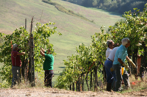 Sangiovese grapes coming in for Vino Nobile